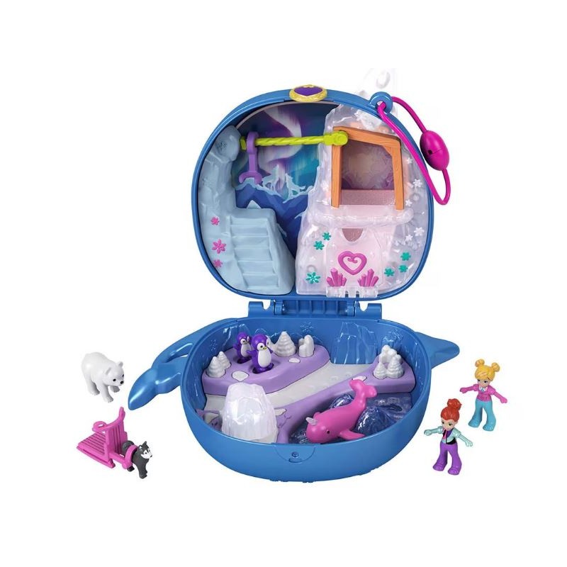 Set de joaca Polly Pocket, Aventura polara, cu 2 papusi, in forma de narval